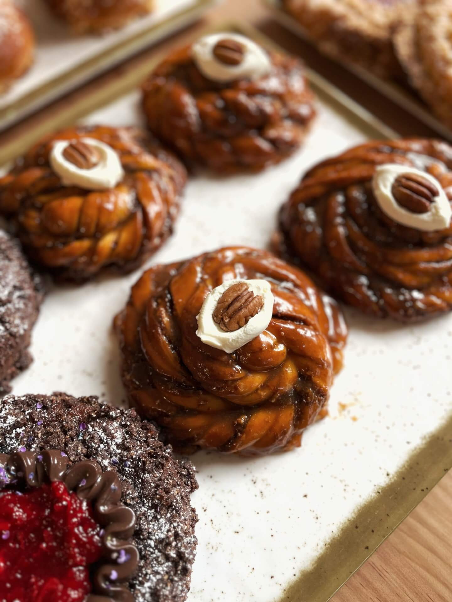 2. Bunsy z waniliowym creme cheese, jagodami, kwaśną śmietaną i kruszonką z palonego masła