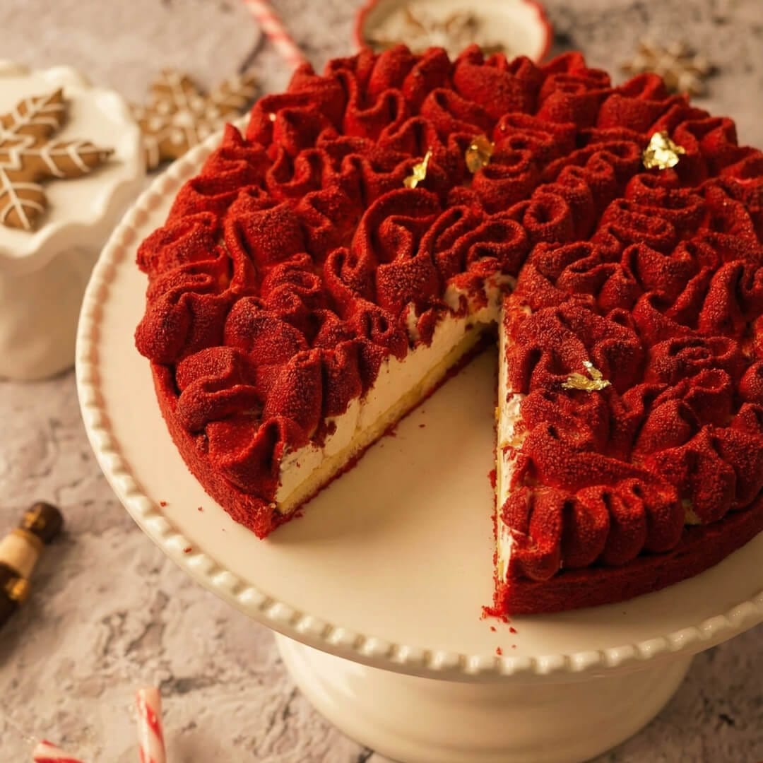 Kruche ciasto, konfitura z gruszek, ciasto migdałowe, krem chantilly na bazie miodu gryczanego, jadalny zamsz.