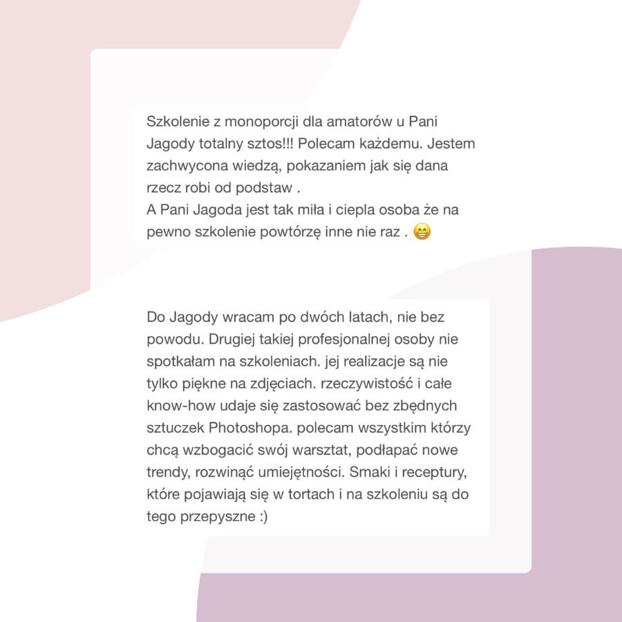 Dostęp do zamkniętej grupy absolwentów, gdzie możesz zadawać pytania, konsultować się z prowadzącymi i dzielić się swoimi wypiekami po szkoleniu.